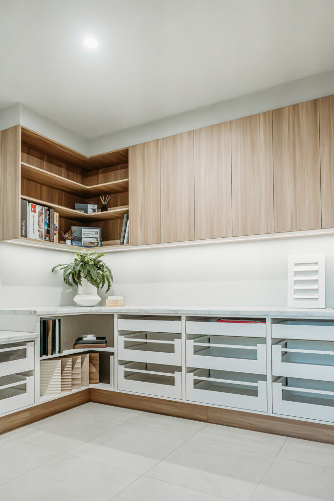 Feel the difference in person—run your hands over the smooth surfaces of our premium Corian® solid surface and Sentio finishes, open drawers and cabinets to experience the Blum soft-close mechanisms, and see how our innovative storage solutions can maximise space without compromising on design. Our showroom is designed so you can truly see and touch how these cabinets would look and function in your own home.